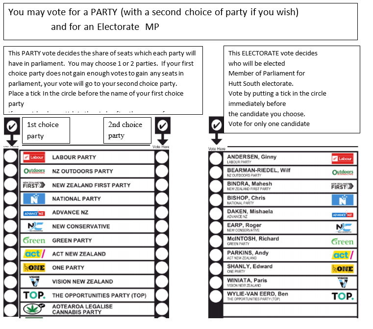 The 2020 Hutt South voting paper with a second choice column added
